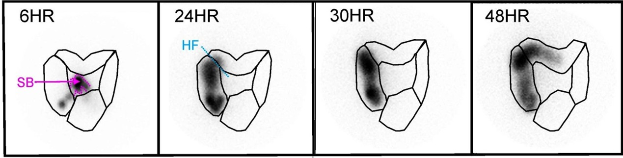 - Whole gastrointestinal transit scintigraphy (Figure 2): useful to determine gastric emptying, small bowel transit and colonic transit; 20% of children with chronic constipation will have dysfunctional gastrointestinal transit of the stomach, small bowel and colon; only available in hospital with Nuclear Medicine Department