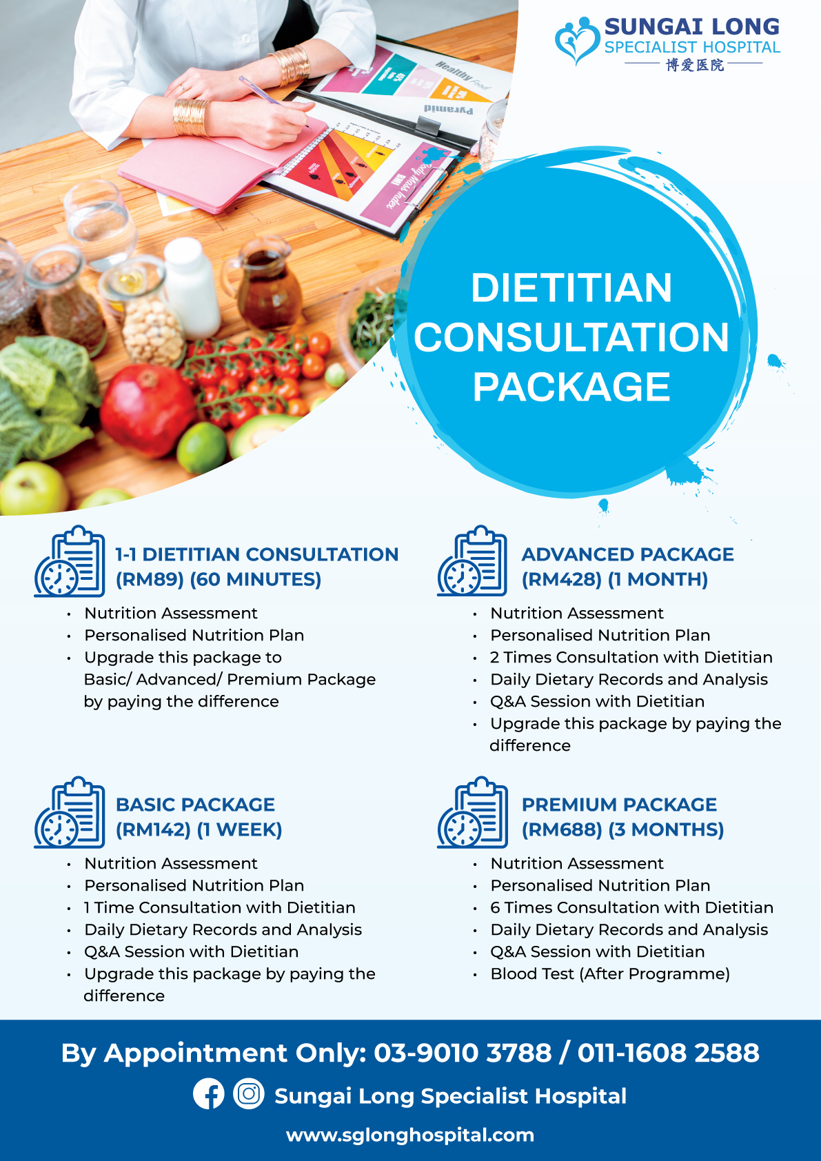 - " Let food be thy medicine and medicine be thy food - Hippocrates." A balanced diet can help us in disease prevention and management. In Sungai Long Specialist Hospital, our qualified dietitian provides a holistic dietary consultation to manage patients with various health conditions to meet their nutritional and clinical needs.