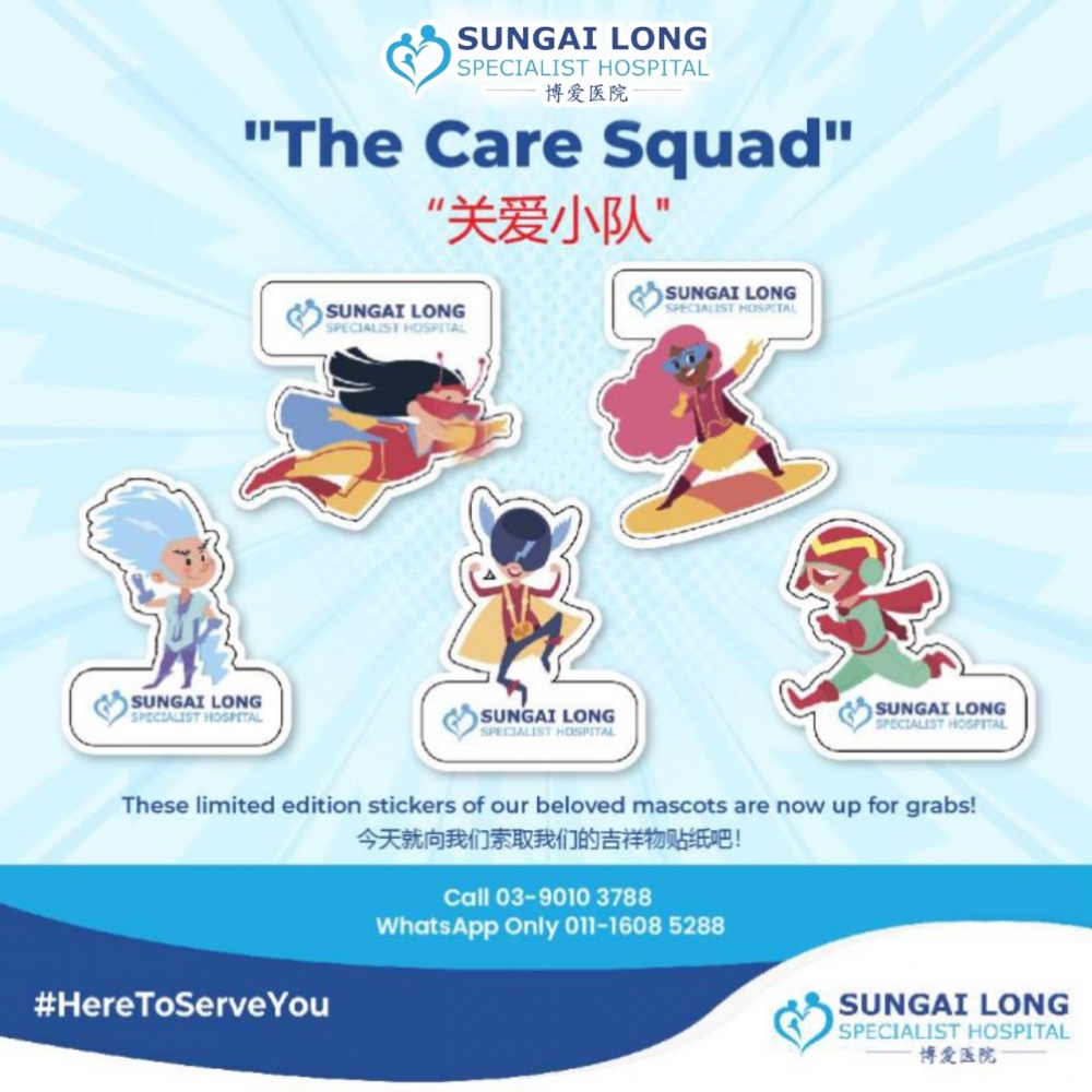 We've got some super exciting news to share with you! These limited edition stickers of our beloved mascots, "The Care Squad," are now available at our Hospital